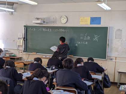 少し冷え込んだ朝になりましたが、気持ちの良い秋晴れのなかで、今日も土曜授業を実施しています。感染予防の観点から今回も保護者に参観いただくことはできませんが、生徒は普段通り落ち着いて授業に参加しています。