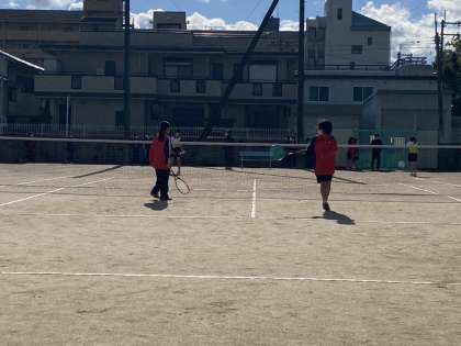 1年生大会の続報です。勝ち残った3ペアの内、2ペアが3回戦に進出しました。少しずつ対戦相手のレベルも上がり、ラリーが長くなってきました。一生懸命にボールを追いかけ、戦術を考えながら、戦っています。