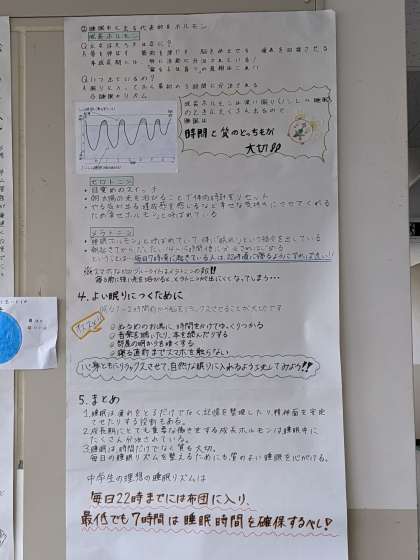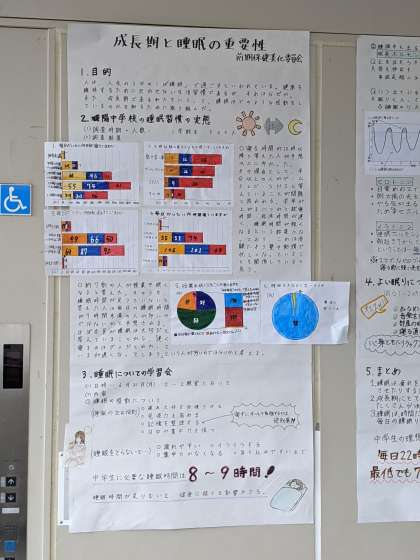 保健美化委員が作成したレポート「成長期と睡眠の重要性」です。