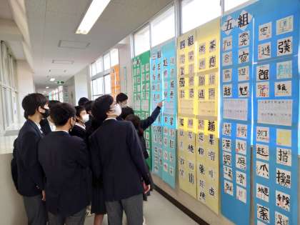 1・2年生の教室では午後から学期末懇談会が行われています。そんな中ですが、3年生は5・6限目の総合の時間を使って、卒業文集や公立高校の出願時に志願書と一緒に提出する自己申告書の取り組みを行っています。それと並行して、文化発表会の展示見学を行いました。