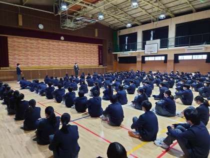 短時間ではありますが、しっかりと清掃活動をしてくれていました。学年集会でも、しっかりと前を向いて真剣に話を聞いてる様子も見られました。