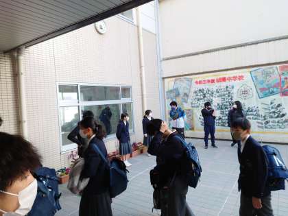3学期2日目の朝です。かなり冷え込んでおり、ネックウォーマーやマフラー、手袋などの防寒着を着けて登校している生徒もたくさんいます。