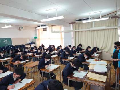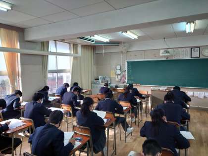 中学校で行われる最後の実力テストです。今日のテストと再来週の火曜日から行われる学年末テストで、すべてのテストは終わりとなります。