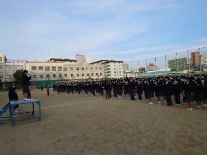月曜日、一週間の始まりは全校集会からです。新型コロナウィルスの感染状況が厳しくなっています。校長先生より、週末に行われた駅伝大会の表彰が行われたあと、感染症対策の徹底の話とともに、1月17日ということで、阪神淡路大震災についてのお話と黙祷が行われました。