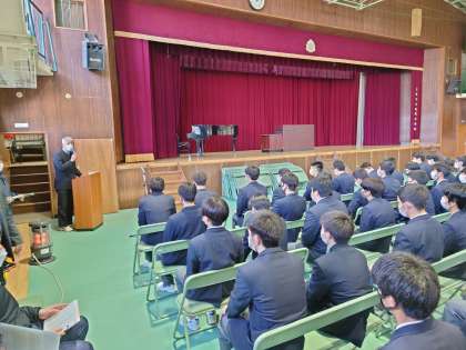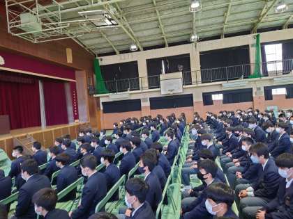 本日1・2限目の時間を使って、代表の在校生も入っての卒業式の予行が行われています。