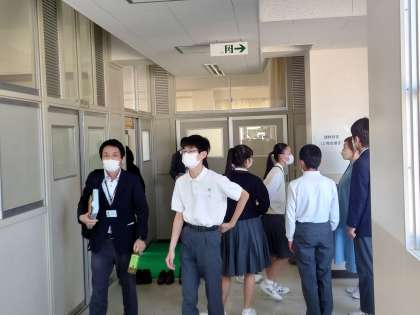 代表生徒が会議室に、担当の先生を呼びにいくところからスタートです。みんな、少し緊張気味の表情ですが、講座を楽しみにしているようです。