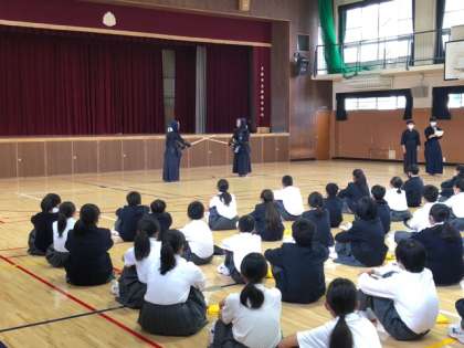 本日より1年生の部活動見学が始まるため、6時間目の時間は2、3年生の先輩による部活動紹介でした。各部活動、工夫を凝らした紹介だったので見ている新入生も楽しめたようです。