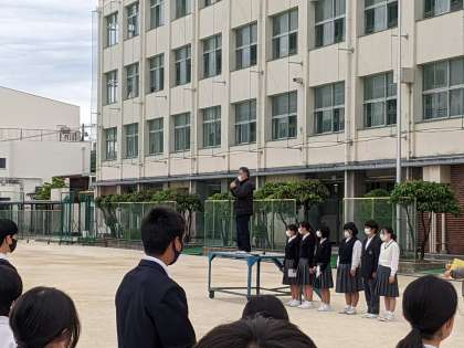 学校長より、「相手がいじめられれている」と苦痛を感じた時点でその行為がいじめになること。「相手の立場や思いになって言葉をかけることや行動することの大切さ」について話をしました。