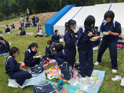 しかし、芝生の上での食事は虫が集まってくるため大パニック!きゃーきゃー、わーわー言いながらの昼食となりました。
