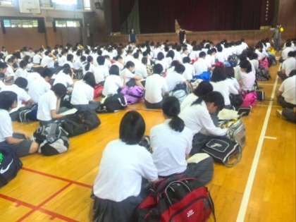10日(水)5限目、体育館で持ち物確認を行いました。当日、忘れ物がないように、しおりで確認してください。