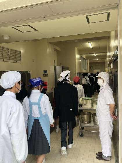 大人気のカレーライスにトンカツが添えられ、ラッキーにんじんも入っていました。フルーツゼリーは、みかんゼリーと和なしの缶詰を混ぜ合わせた彩りのよいデザートです。