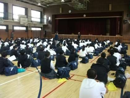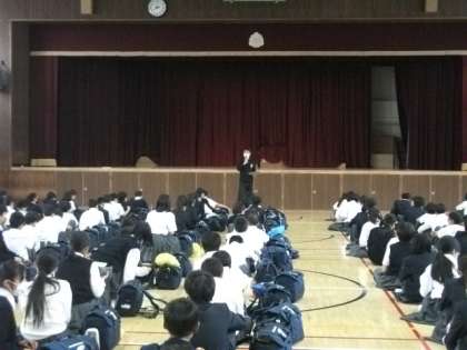 1年生では、明日から取り組む一泊移住の前日指導を体育館で行いました。