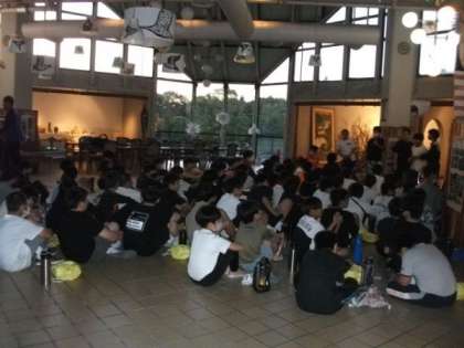 夜レクの開始に向けて、中ホールに全員集合です。