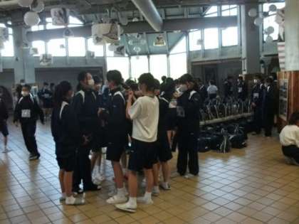 6時に起床して、中ホールに子どもたちが集まって来ました。