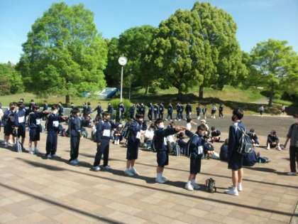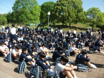 退所式を行うために、集いの広場に集合します。