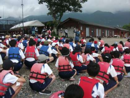 湖畔に集合して、開校式を行いました。