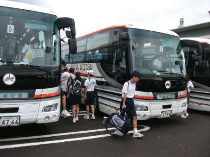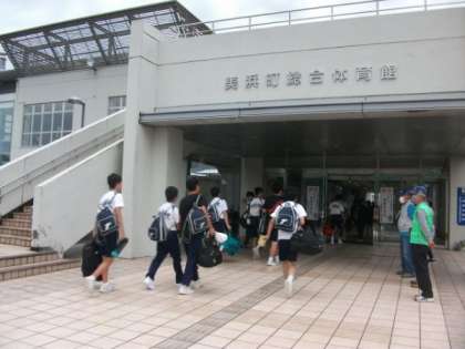 バスに乗って、美浜町体育館に戻って来ました。