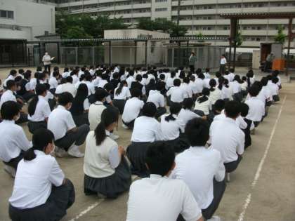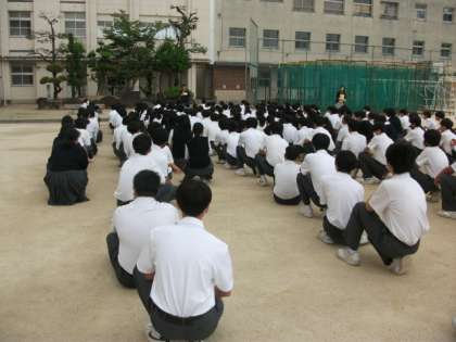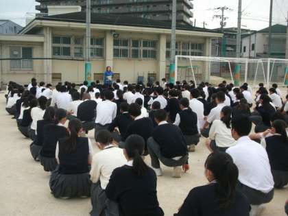 本日、運動場で行った学年集会の様子です。