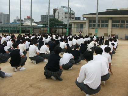 本日、運動場で行った学年集会の様子です。