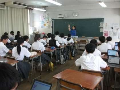 <写真上>2年1組(英語)
