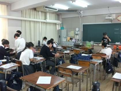 <写真上>3年4組(英語)