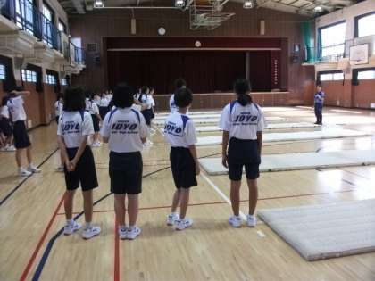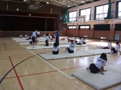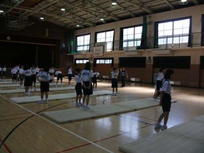 本日、3限目に1年4組・5組で嘉村先生の女子体育の研究授業を行いました。