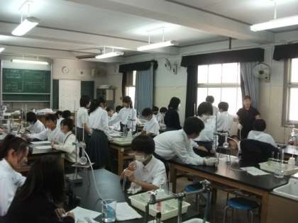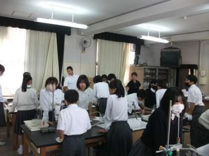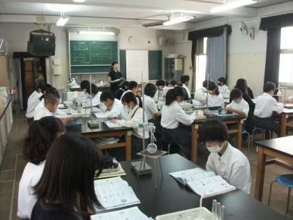 本日、1限目に1年5組で山口先生の理科の研究授業を行いました。