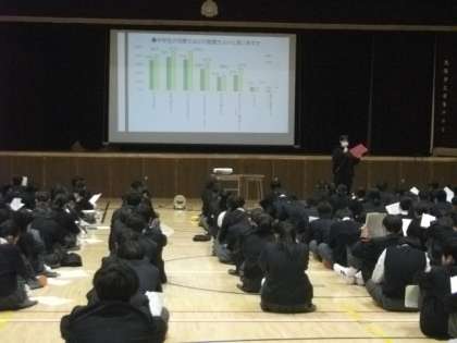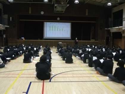 本日、5限目に養護教諭の篗田先生による性教育の授業が体育館で行われました。