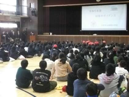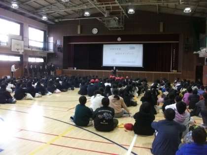 <写真>体育館での学校紹介