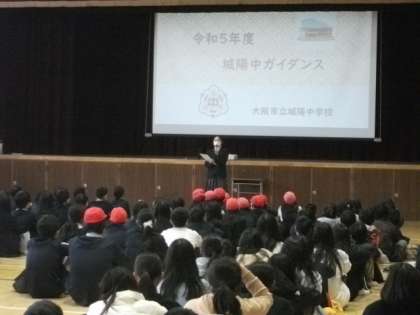 校区内4小学校の6年生を学校に迎えて、生徒会のメンバーが主体となって城陽ガイダンス(学校紹介、授業見学、部活動見学)を行いました。