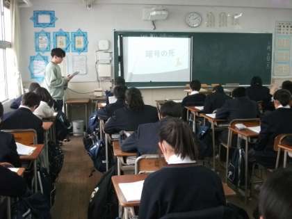 本日、6限目に1年3組で牧野先生の道徳の研究授業を行いました。