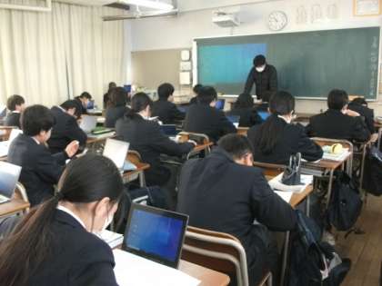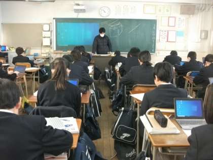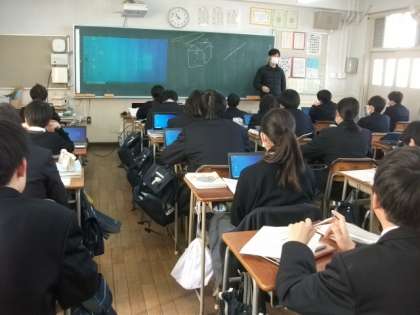 本日、3限目に1年2組で余越先生の数学の研究授業を行いました。