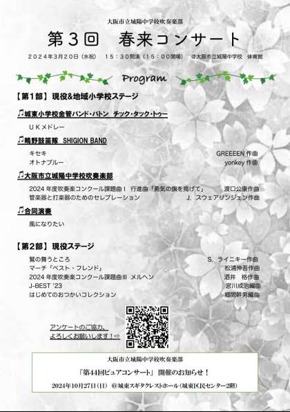 吹奏楽部 第3回春来コンサート