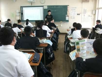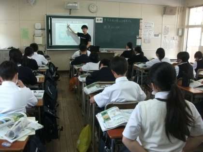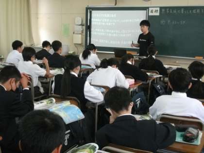 本日、2限目に1年5組で築地先生の社会の研究授業を実施しました。