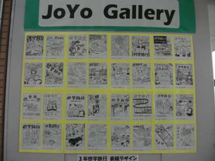 現在は、3年生の修学旅行の表紙デザインが展示されています。
