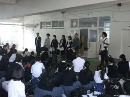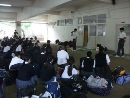 生徒代表のあいさつに続いて、3日間お世話になる添乗員さんと写真屋さんから自己紹介をしていただきました。