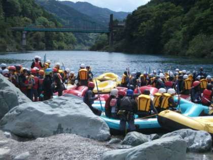スタート地点でボートに乗り込みます。