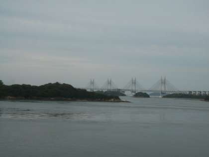 倉敷市は、少し曇り空ですが、ホテルの前の瀬戸大橋の眺めはとても素晴らしいものがあります。