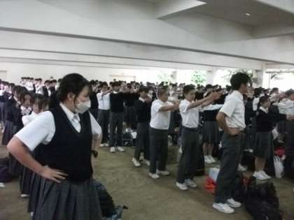 帰校式の隊形に整列します。