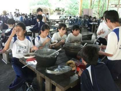 班ごとに出来上がったカレーライスをいただきました。