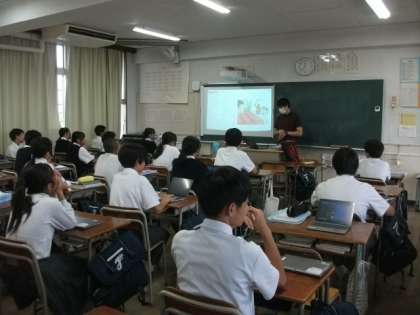 〈写真中〉2年2組(英語)