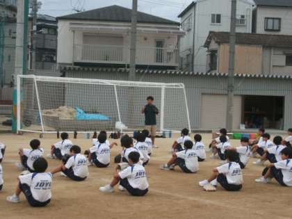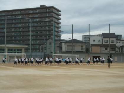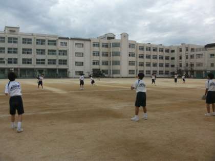 本日、1限目に1年1、2組において、体育科の石井先生の研究授業を運動場で行いました。