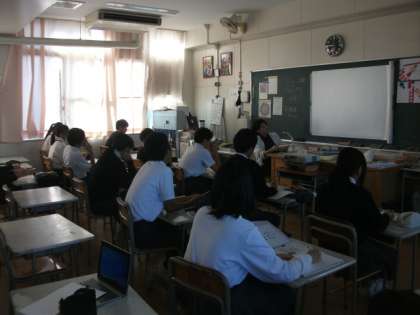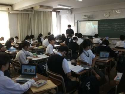 〈写真中〉2年2組(英語)