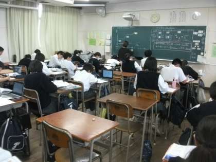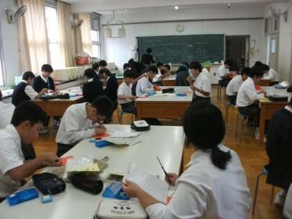〈写真上〉1年4組(理科)