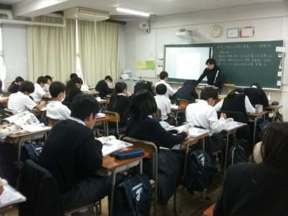 〈写真中〉1年2組(英語)