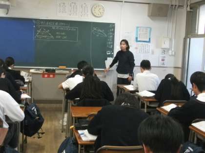 本日、5限目に3年3組で、数学の三輪先生の研究授業を行いました。