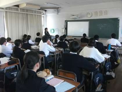 〈写真中〉2年2組(英語)