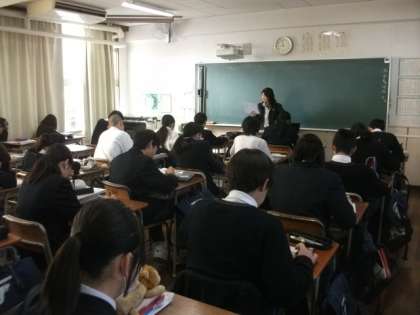 〈写真中〉2年2組(英語)
