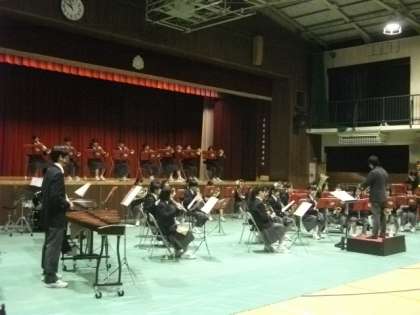 壮行会での吹奏楽部の演奏の様子です。