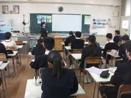 〈写真上〉2年1組(英語)